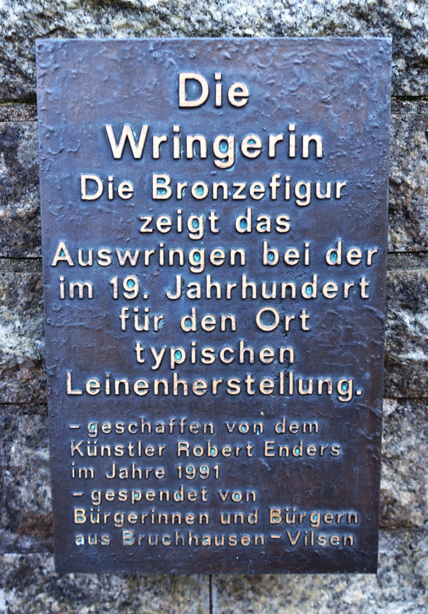 Die Marburgerin hält es für durchaus lohnenswert, einen genaueren Blick auf die bewegte Vergangenheit unserer „zweiten Haut” zu werfen. Denn auch in Bruchhausen-Vilsen erinnert der Brunnen mit der Figur "Die Wringerin" - im Volksmund wird sie liebevoll "Dicke Herta" genannt – an das blühende Handwerk der Leinenverarbeitung im vorigen Jahrhundert.